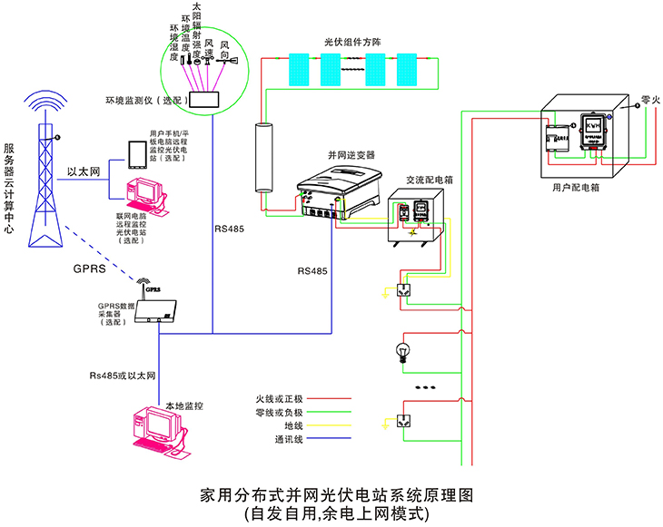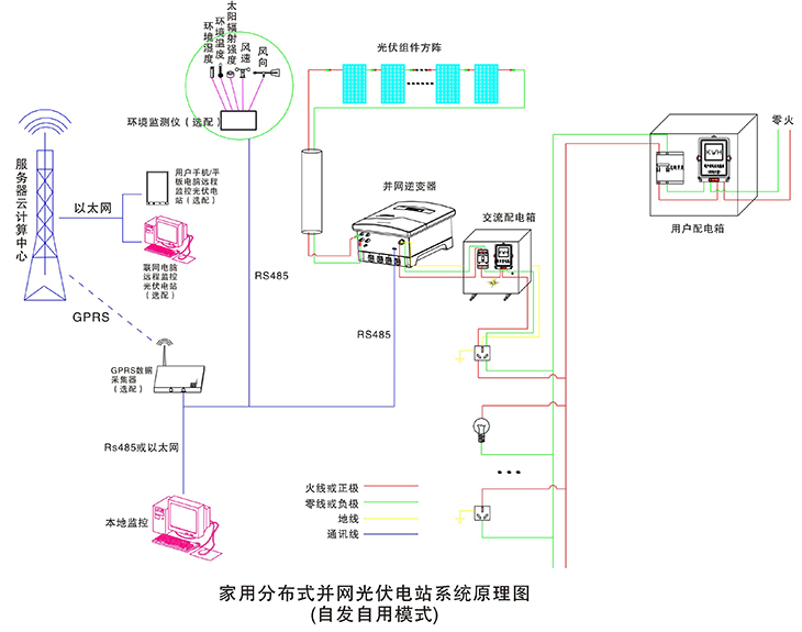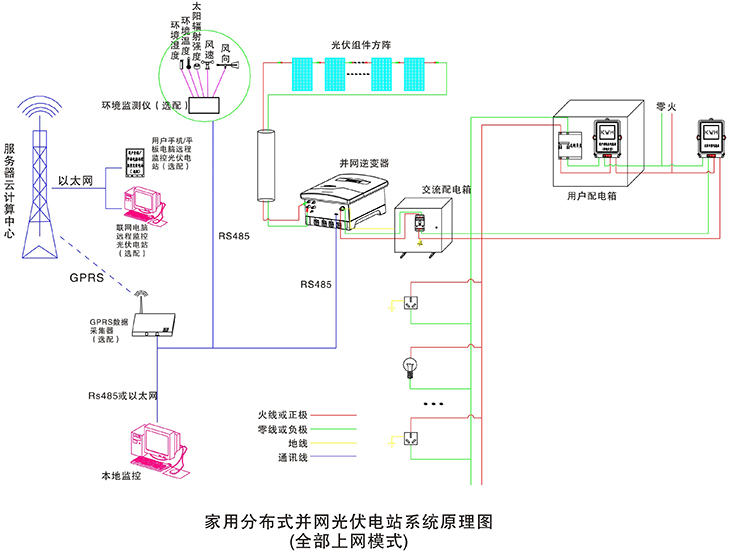 在晴朗的白天,裝在屋頂上的光伏組件發(fā)出的直流電經(jīng)過(guò)并網(wǎng)逆變器逆變成與電網(wǎng)同頻率同相位的單相交流電給負(fù)載進(jìn)行供電,在夜晚或陰雨天等太陽(yáng)光照不足的情況下,系統(tǒng)處于待機(jī)狀態(tài),負(fù)載用電全部來(lái)自電網(wǎng)。您可以通過(guò)系統(tǒng)監(jiān)控軟件來(lái)實(shí)時(shí)查看系統(tǒng)的運(yùn)行狀態(tài)和故障信息,或者是選配遠(yuǎn)程通訊數(shù)據(jù)采集器,將系統(tǒng)工作數(shù)據(jù)通過(guò)GPRS或以太網(wǎng),傳輸?shù)侥氖謾C(jī)、平板電腦或任意一臺(tái)聯(lián)網(wǎng)的電腦,以便于您遠(yuǎn)程實(shí)時(shí)掌控電站的信息。