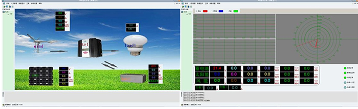 ◆ 顯示內(nèi)容:蓄電池電壓、風(fēng)機(jī)電壓、光伏電壓、風(fēng)機(jī)電流、光伏電流、風(fēng)機(jī)功率、光伏功率,能量模擬圖,當(dāng)前風(fēng)速(米/秒),當(dāng)前風(fēng)向(度),當(dāng)前風(fēng)力資源平估。
