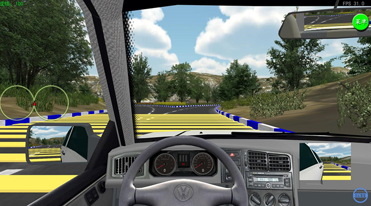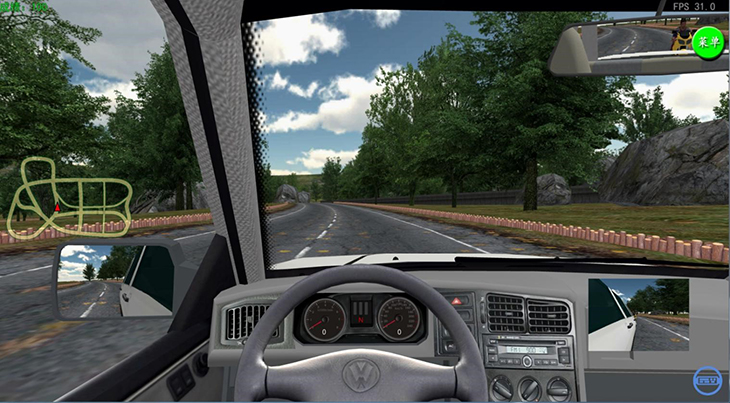 2、操控系統(tǒng):離合剎車油門、方向盤、檔位、手剎、左右轉(zhuǎn)向燈、遠近光燈切換、大燈行車燈、喇叭、雨刮器等保留原車功能改裝一應俱全,每一個操作信號采用動作靈活,無阻滯的磁感應非接觸式高精度傳感機構(gòu)進行數(shù)據(jù)分析處理并實時傳回計算機,實現(xiàn)圖像實時轉(zhuǎn)變。