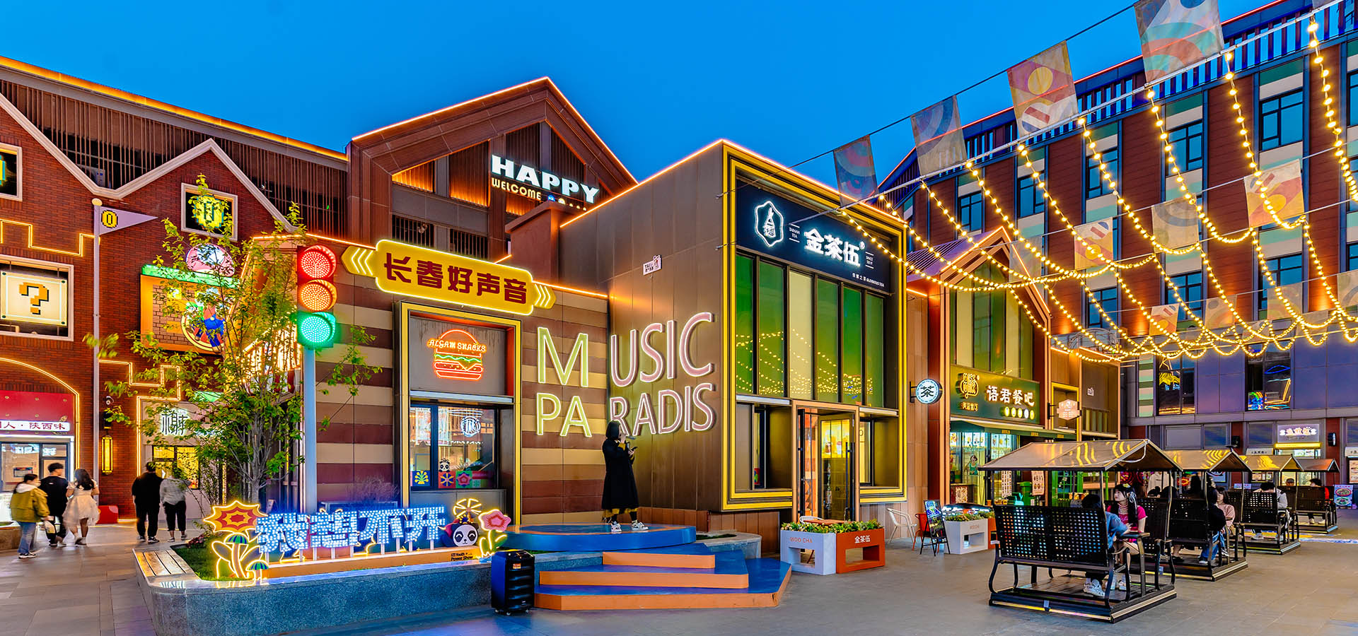 融合美食體驗(yàn)、主題演藝、文化體驗(yàn)、社交娛樂等多元形式,使其成為具有長(zhǎng)春文化特色與人文氣息的代表性商街,將南美文化與國潮文化、藝術(shù)與休閑有機(jī)結(jié)合,有聲、有光、有電、有美食,有社交......用IP塑造場(chǎng)景,營(yíng)造適宜尺度下的極限引流,打造國內(nèi)特色、長(zhǎng)春唯一的輕文旅主題特色商業(yè)街。
