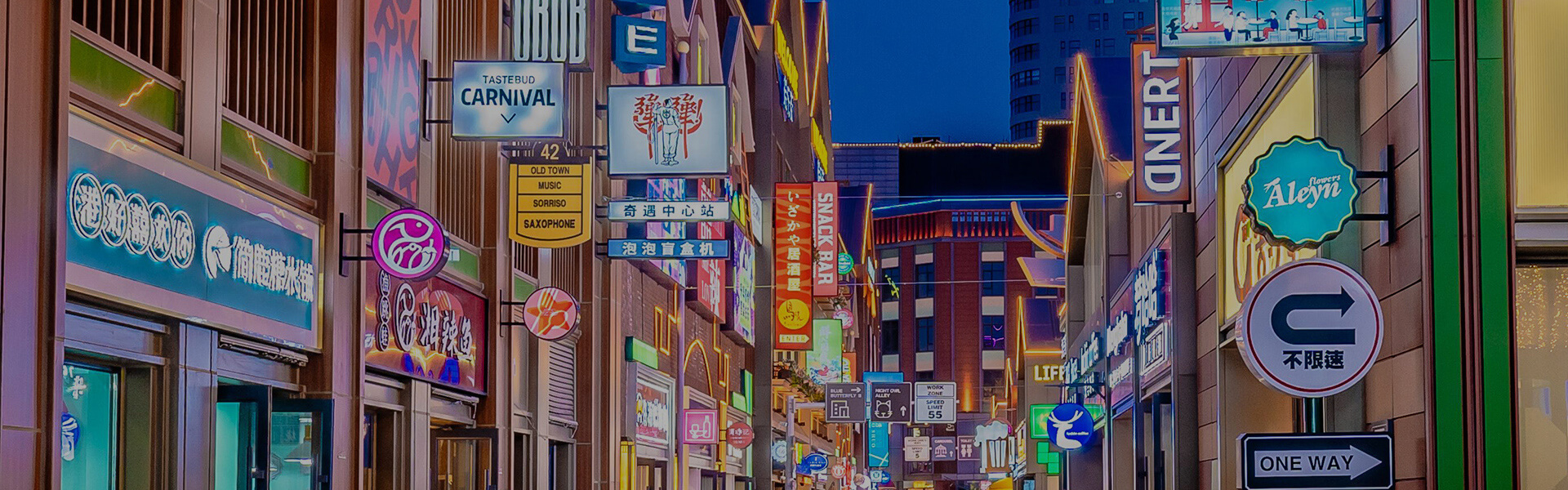 我們?cè)趫?chǎng)景中運(yùn)用走字屏去勾勒出建筑的轉(zhuǎn)角;用燈箱和廣告等等去化解單調(diào)的建筑形式;